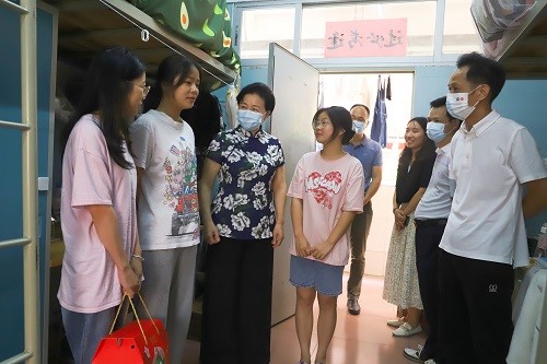 9月12日,学校党委副书记、校长刘文清,党委副书记谢锦群在中山校区中秋假期期间,深入学生宿舍看望慰问假期留校学生,给他们送上节日祝福,并到新学生宿舍楼、心理咨询室、校园治安视频监控室和师生食堂检查指导校园综合服务工作,强调要认真落实好假期疫情防控要求,进一步强化服务意识,切实加强安全管理,推动学校落实立德树人根本任务取得新成效。党政办、宣传统战部、学生工作部和保卫部有关同志陪同。