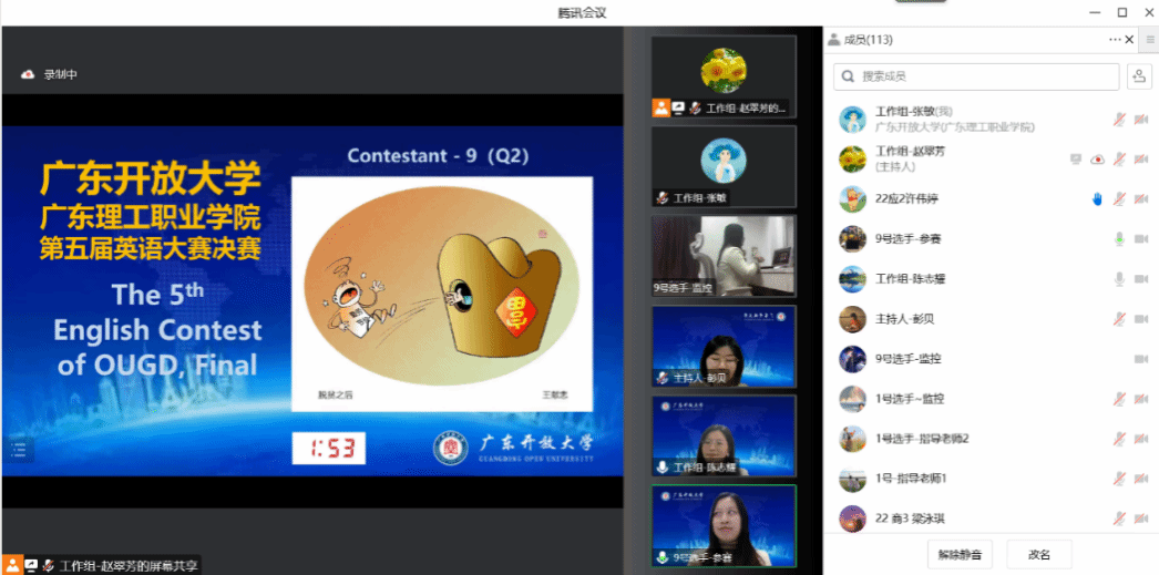 体系第五届英语大赛决赛评出特等奖4项、一等奖6项、二等奖10项、三等奖19项、优秀奖13项,汕头、珠海、江门和开平等4所开放大学获优秀组织奖。这也是学校首次尝试线上举行外语专业技能比赛。