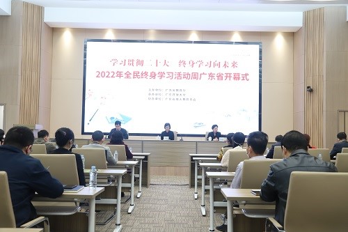 吴艳玲指出,党的二十大报告提出“建设全民终身学习的学习型社会、学习型大国”。广东将持续发力、久久为功,加快推动形成方式更加灵活、资源更加丰富、学习更加便捷的全民终身学习推进机制,创新发展继续教育、老年教育、社区教育,坚持网格化服务、数字化赋能、个性化供给、终身化教育,服务人的全面发展,为一体统筹实施教育强国、科技强国、人才强国战略,为广东在新征程上走在前列勇担先锋,提供强有力人才支撑。