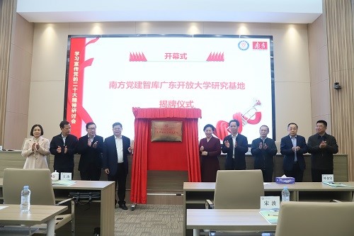 研讨会举行了南方党建智库广东开放大学研究基地揭牌仪式。该基地由南方杂志社、广东开放大学共同发起成立和主办,旨在整合发挥媒校独特优势,搭建理论研究和传播平台,推动习近平新时代中国特色社会主义思想在南粤大地落地生根、开花结果。