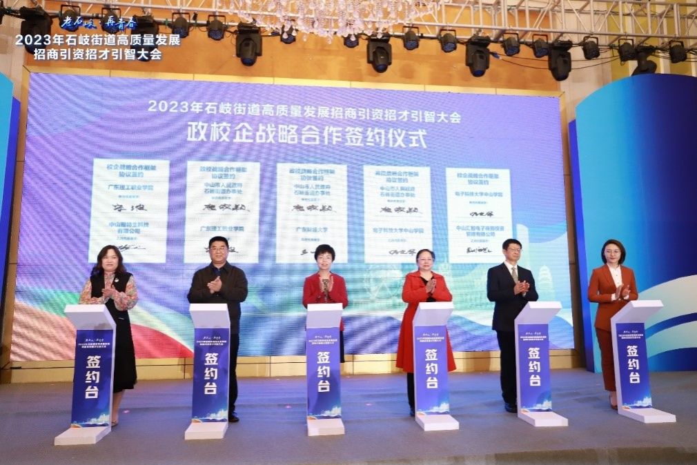 3月28日,中山市石岐街道举行高质量发展招商引资招才引智大会。学校副校长宋波应邀出席大会,并代表学校与中山市人民政府石岐街道办事处和中山雅特生科技有限公司签署战略合作协议,进一步推动产业链、教育链、人才链高效对接,促进区域高质量发展。学校学生工作部(就业指导中心)、教务部、工程技术学院(物联网学院)、机电工程学院(标准化学院)、应用外国语学院等负责同志参加有关活动。