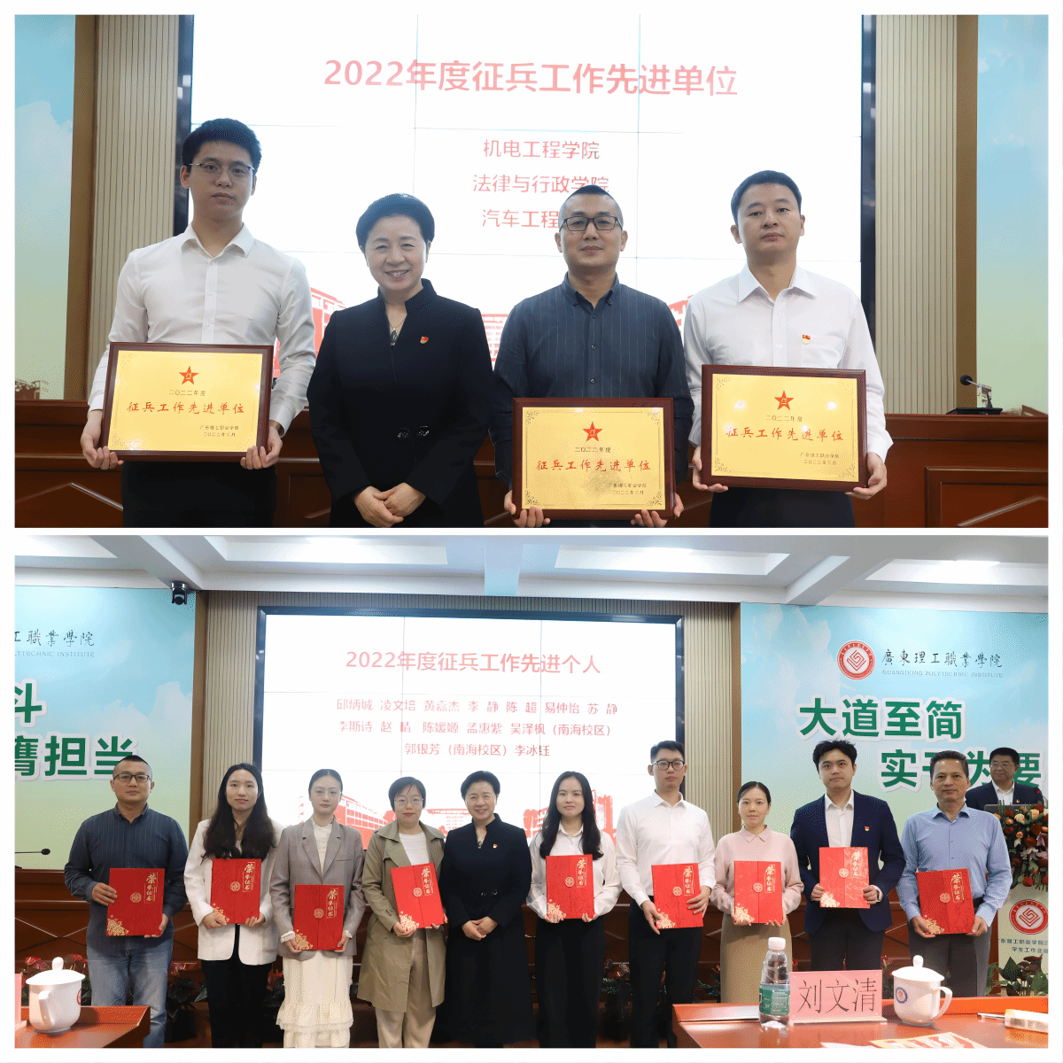 会议对2022届毕业生就业工作先进集体和先进个人、2022年度征兵先进单位和先进个人以及2022年优秀辅导员进行了表彰。会议听取了学生工作和共青团工作,机器人学院和法律与行政学院“三全育人”工作经验做法,经济管理学院辅导员易仲怡和文化传播与设计学院辅导员陈媛嫄省优秀学生工作案例等的汇报和分享。