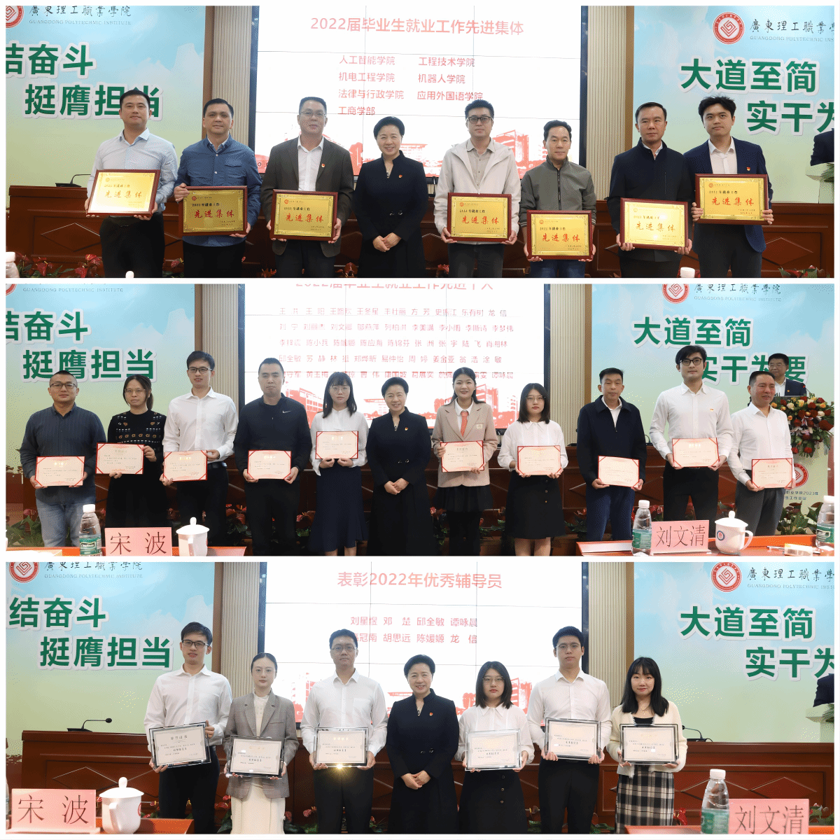 刘文清指出,2022年,全体学工队伍坚持以习近平新时代中国特色社会主义思想为指引,在学校党委和行政的坚强领导下,聚焦落实立德树人根本任务,围绕学校中心工作踔厉奋发、勇毅前行,学工体系不断完善、机制不断健全、队伍朝气蓬勃,各项工作取得显著成效。一是毕业生去向落实率全省第一,学生专插本升学率持续名列前茅;二是学校被评为广东省国防教育特色学校;三是“三全育人”理念在学校得到更广泛认同与融合,学校育人基础更加深厚、育人氛围更加浓郁、育人成效更加彰显;四是共青团工作取得新成效。