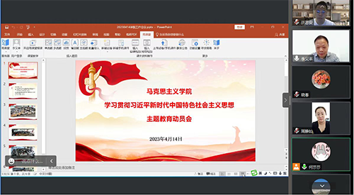 4月14日,在学校召开学习贯彻习近平新时代中国特色社会主义思想主题教育动员部署会后,马克思主义学院即召开专题视频会议,深入学习贯彻习近平总书记重要讲话精神,传达学习学校动员部署会议要求。马克思主义学院全体教师参会,会议由学院院长李义丰主持。