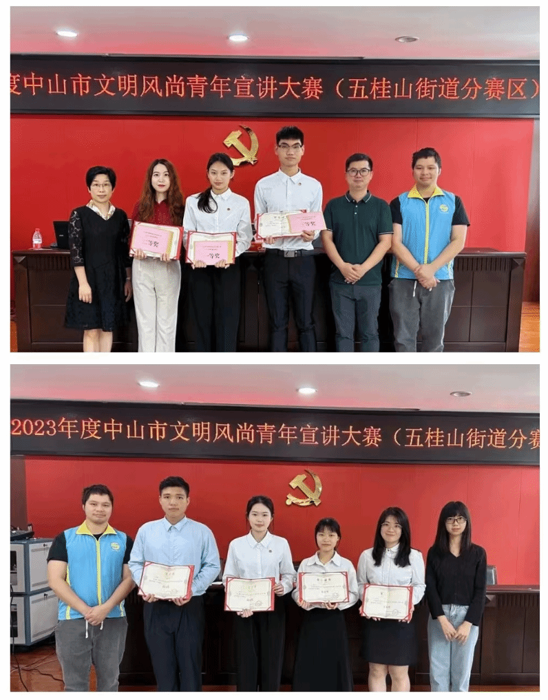 4月17日,“学习党的二十大,永远跟党走,奋进新征程”中山市文明风尚青年宣讲大赛(五桂山街道分赛区)在街道党群服务中心举行。学校团员青年龚司蕊荣获一等奖,吴杰良获三等奖,赖高泓、卓丽洁、林舒珊、莫芯蕊等获优秀奖。同学们从青年视角分享学习贯彻党的二十大精神的深切感悟,展现了理工青年学子昂扬向上的青春风采。