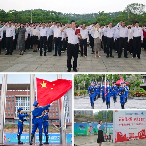 心中有信仰,脚下有力量。7月1日,党的102岁生日,学校举办“青春再起航,建功新时代”升国旗仪式暨庆祝“七一”重温入党誓词。学校党委副书记谢锦群,学校党委委员、副校长宋波出席活动。各相关职能部门负责人、各学院党总支负责人、学生党支部书记、全体学生党员和学生代表共400余师生共同参加。