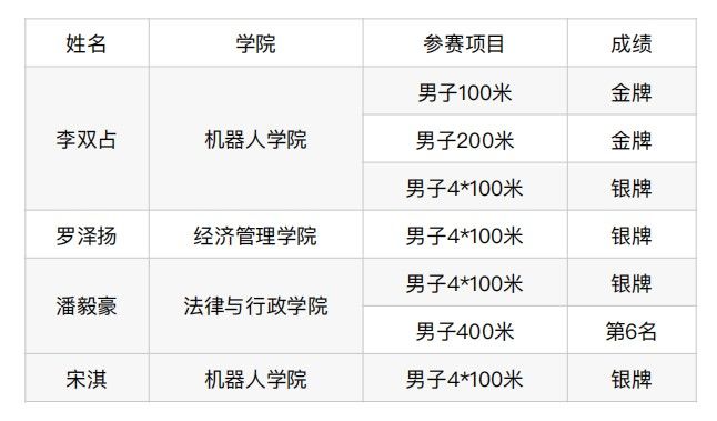 两金一银收官全国大学生田径锦标赛,是学校近年来大力推进体教融合的显著成果,学校田径队的教练、队员们有收获、有感动,更有对未来美好的期待。用汗水浇灌青春,用拼搏收获成就,学校田径健儿将继续在田径场上挥洒汗水、挑战极限,争取更大进步和成绩。