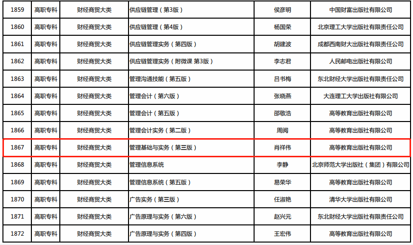 《管理基础与实务(第三版)》由学校肖祥伟主编,学校王丽琴、王荣及广州科技贸易职业学院、广州市荔枝青年成长促进会张玉玲担任副主编,由深圳职业技术大学胡延华教授主审,高等教育出版社出版。该教材融合主编及行业企业专家企业实践及和人力资源项目咨询与培训成果,遵循高职学生职业成长成才规律,以行动导向理念为指导,对接职业教育国家教学标准体系,主动融和入1+X证书对管理基础知识与通用管理能力的要求,落实立德树人理念,有效汲取《管理学》四大职能理论体系与通用管理能力考证体系之精华,深度融合中国传统管理文化精髓,创造性地构建了由管理基础认知、自我管理能力、任务完成能力、团队协作能力、基层主管能力5个模块共25个由低到高、由易及难、由简及繁、阶梯上升、循序渐进的典型学习与工作任务组成的通用管理能力培养体系。