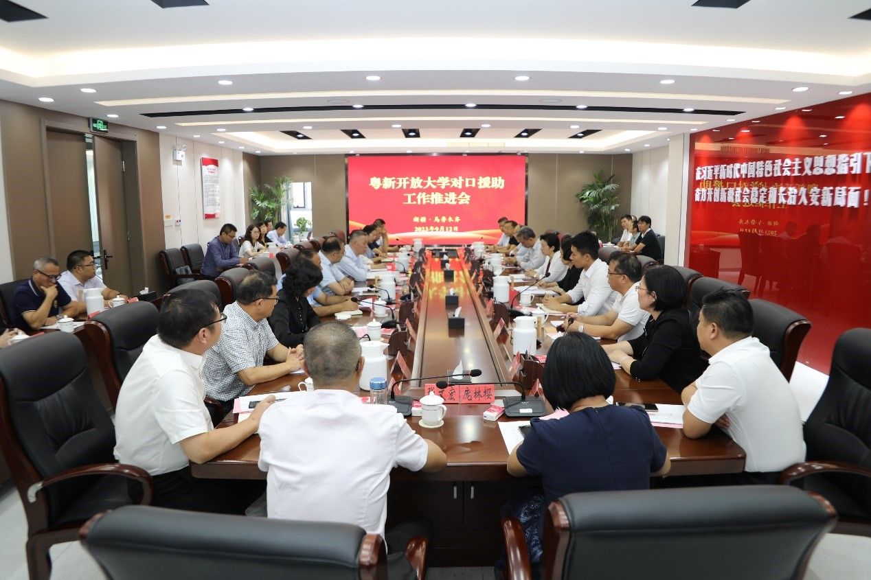 9月12日,粤新开放大学在乌鲁木齐召开加快推进“粤新开放大学对口援助”专题工作会议,推进加快落实两校校际对口援助协议。为认真贯彻落实习近平总书记关于新疆工作的重要讲话和重要指示批示精神,助力我省教育援疆工作,此前的暑假期间,学校与新疆开放大学签订了对口援助协议。开学伊始,学校即与新疆开放大学推进出台工作实施方案,并召开对口援助工作推进会。新疆开放大学党委书记黄朝华、学校党委副书记、校长刘文清出席会议并讲话。新疆开放大学校长安瓦尔·买买提明主持会议。学校副校长王宜奋,两校党政办公室、规划部及相关处室,粤新部分基层开放大学负责同志参会。