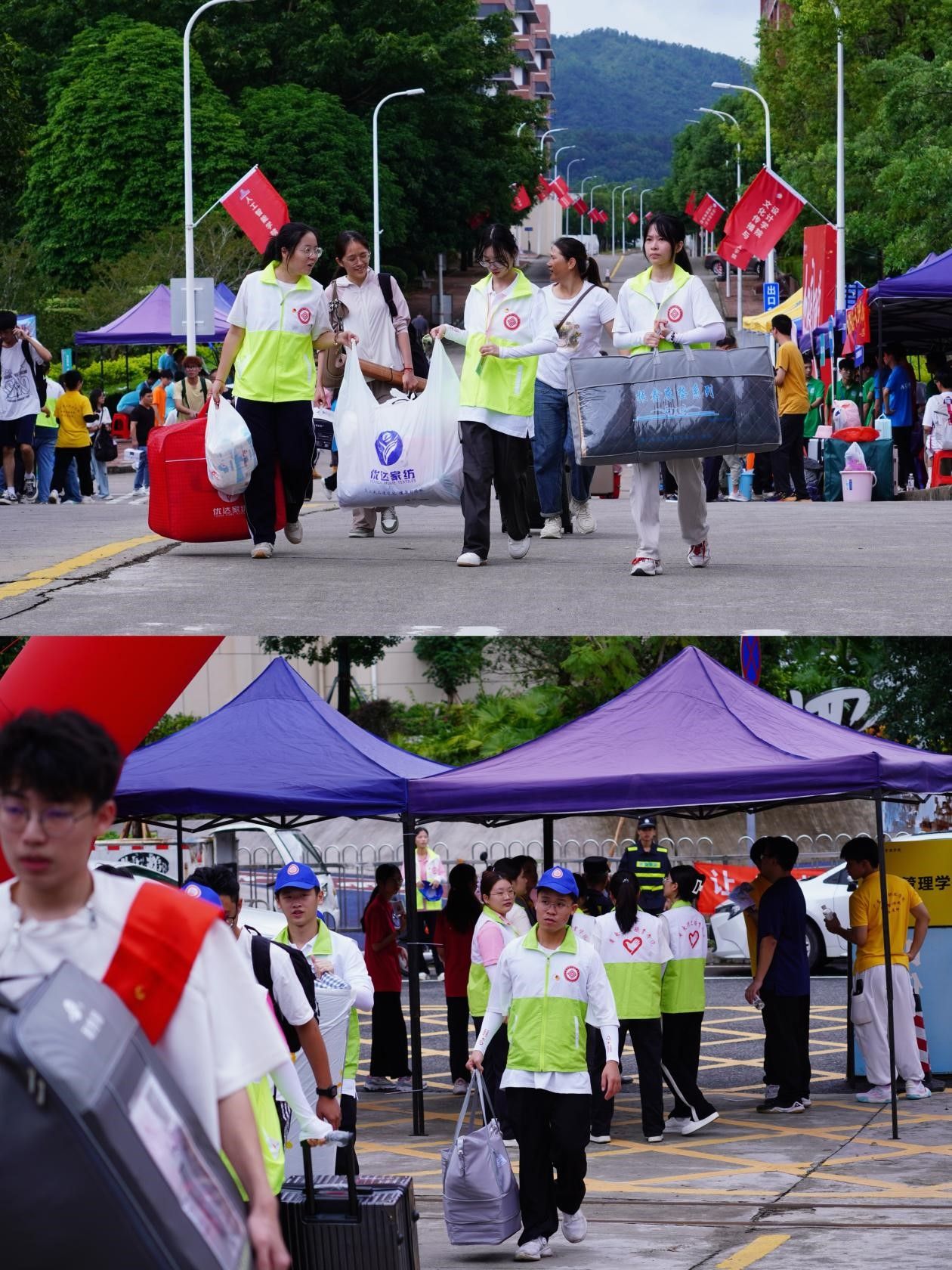 用心用情用力,全力做好迎新工作。志愿者全天候坚守岗位,以最饱满的精神状态迎接新同学的到来,积极协助搬运行李、耐心引导完成报到手续办理,热情答疑解惑,力求为新生们送上最贴心、最细心、最暖心的服务。