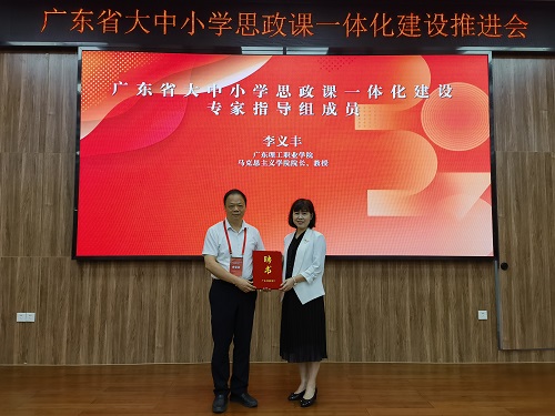 10月20日,广东省大中小学思政课一体化建设推进会在广州召开。学校马克思主义学院院长、教授李义丰获聘省大中小学思政课一体化建设专家指导组成员并在会上获颁聘书。