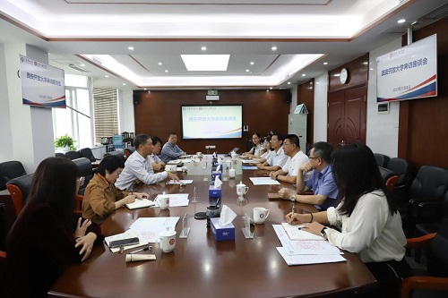 宋波代表学校对西安开放大学来访表示欢迎。他简要介绍学校基本情况及发展特色,指出学校坚持以习近平新时代中国特色社会主义思想为指导,落实立德树人根本任务,在服务国家战略、人才培养、产教深度融合、职继融通、乡村振兴教育等方面取得了丰硕成果。