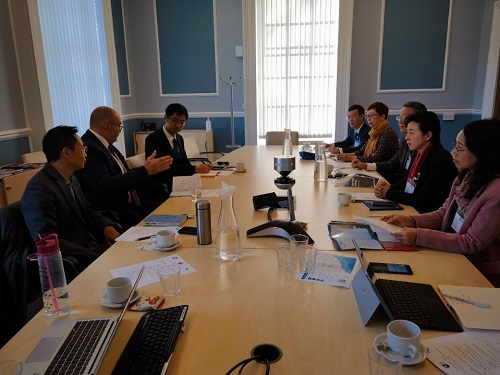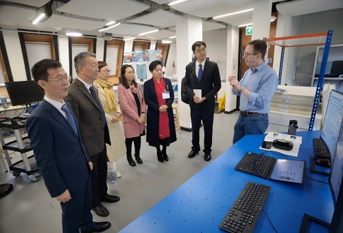 在英国开放大学,刘文清参观了该校STEM研究所,认真观摩机器人、物联网远程操控等在线科学实验实训展示和人工智能、大数据技术在远程实验方面的应用演示,与该校副校长Ian Pickup进行了坦诚深入的交流,深入了解研究所支撑开放教育实践教学和面向公众开展科普教育等情况,探讨两校联合开展课程资源建设等。双方表示,两校此前共同开展了课题研究、师资培训等,合作基础良好,今后要进一步巩固深化拓展合作成果,努力提升合作水平。