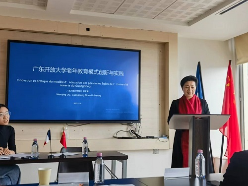 在法国宜世高等精神运动与康复学院,刘文清与该学院执行董事、校长Mark Soubiran及相关学者深入交流,了解精神运动康复在法国的研究、应用、发展以及国际推广情况,并应邀作“广东开放大学老年教育模式创新与实践”主题演讲,介绍我校省重点建设学科老年学建设情况和“混合多元、学养结合、智慧助老”的老年教育模式创新与实践。我校的先进办学理念、鲜明办学特色和丰硕办学成果得到对方的高度赞赏,也激发了开展合作的强烈兴趣。双方一致表示,宜世学院精神运动康复师学科建设与广开深入推进智慧健康养老服务产教融合不谋而合,今后要坚持创新、开放的新发展理念,健全合作机制,共同探索中国传统养生文化与精神运动康复的结合及其在老年学中的应用,共同努力打造老年服务人才培养的中法合作示范点。
