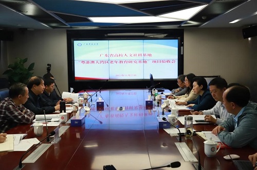 11月27日,学校党委副书记、校长、研究员刘文清主持的广东普通高校人文社科重点研究基地“粤港澳大湾区老年教育研究基地”建设项目通过结题验收。中国人民大学原副校长、教授杜鹏担任结题验收专家组组长。特邀嘉宾、省教育厅科研处副处长王瑜出席结题验收会。