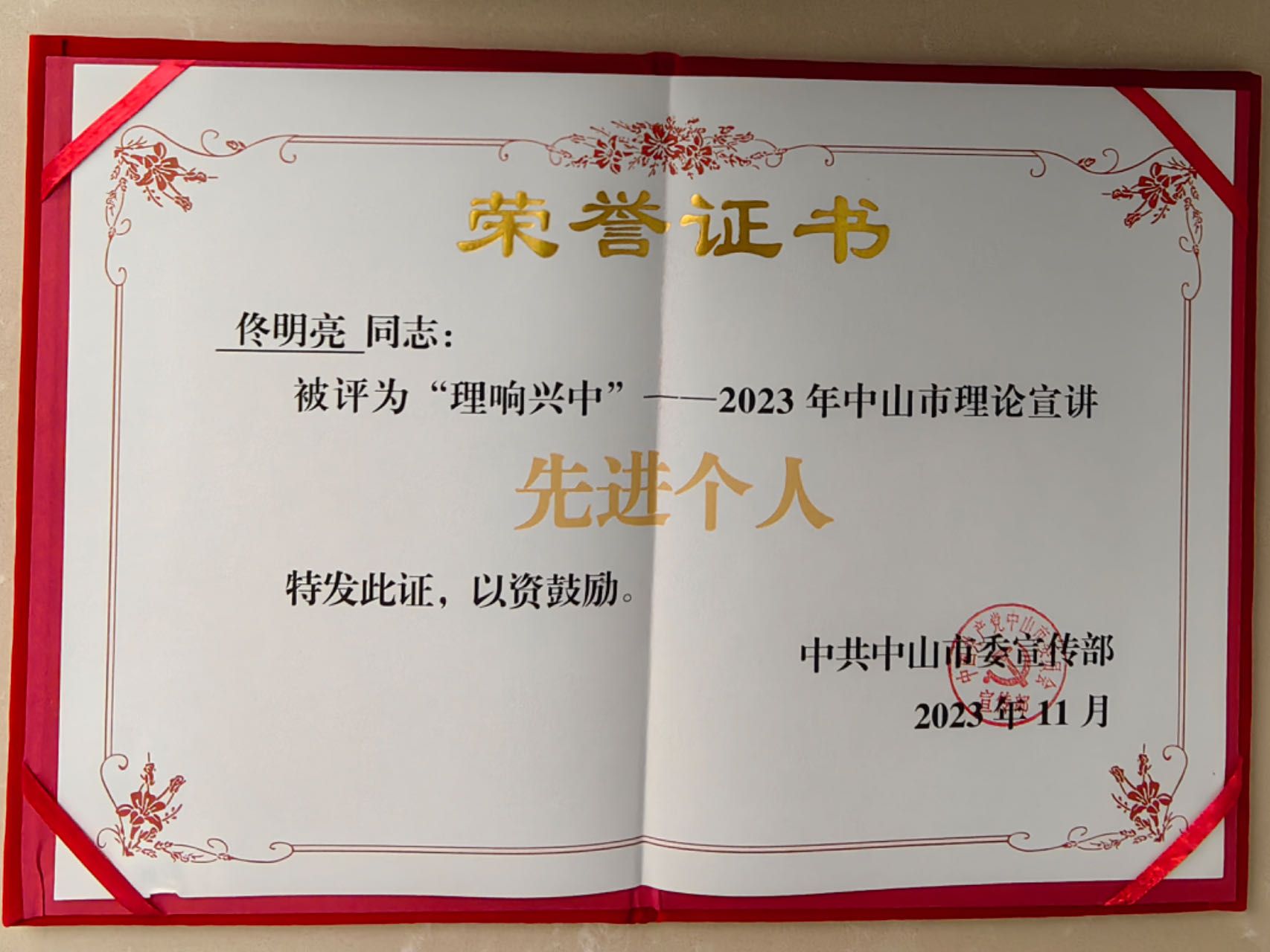 近日,中山市委宣传部公布“理响兴中”——2023年中山市理论宣讲先进遴选结果。其中,中山市委宣讲团成员、学校经济管理学院教授佟明亮获评“理论宣讲先进个人”。