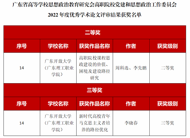 近日,省高等学校思想政治教育研究会公布全省高职院校党建和思政工作优秀典型案例和学术论文评审结果,学校2篇学术论文获奖。