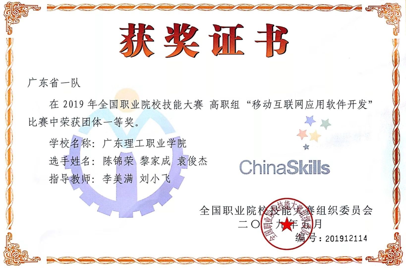 学校获全国职业院校技能大赛移动互联网应用软件开发赛项一等奖(2019年)