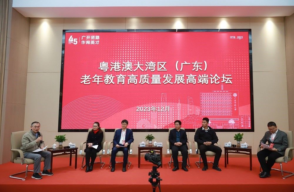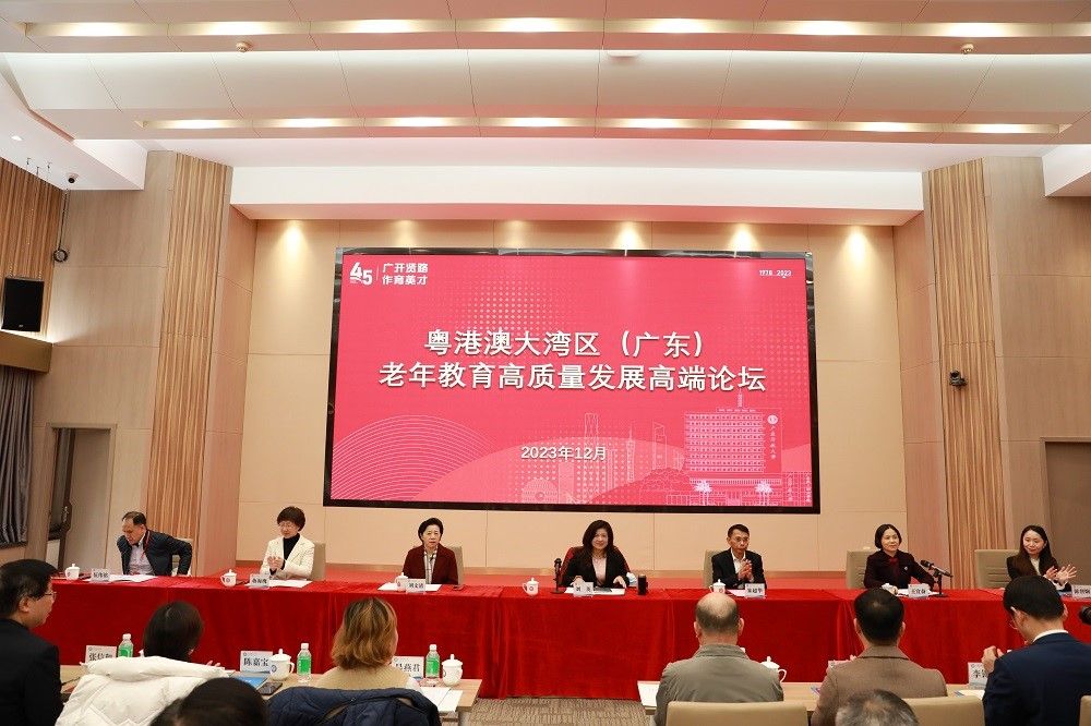 12月17日,粤港澳大湾区(广东)老年教育高质量发展高端论坛在学校广州校本部举行,深入学习贯彻习近平总书记对老龄工作的重要指示精神,立足粤港澳大湾区建设,开展老年教育的理论和实践交流研讨,推动粤港澳大湾区老年教育高质量发展。论坛由学校主办,香港都会大学、澳门社会工作与养老专业服务协会协办。