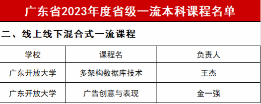 近日,省教育厅公布2023年度省一流本科课程遴选认定结果。其中,学校人工智能学院教师、副教授王杰主持的《多架构数据库技术》,以及文化传播与设计学院教师、教授金一强主持的《广告创意与表现》课程被认定为线上线下混合式一流课程。