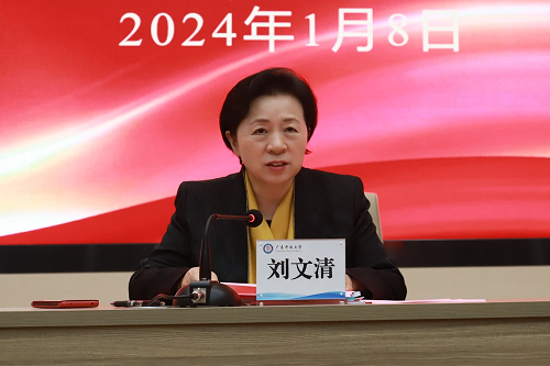 刘文清强调,2024年是新中国成立75周年,是实现“十四五”规划目标任务的关键一年。要深入学习贯彻习近平总书记关于党的建设的重要思想,坚持和加强党的全面领导,落实全面从严治党要求,以党的建设统领学校各项工作,以高质量党建引领高质量发展。一要强化思想政治建设,推进学习成果转化,在践行“两个维护”上作表率。坚持不懈用党的创新理论武装头脑、指导实践、推动工作,切实把学习成果体现在干事创业上,不断推动学校事业发展站上新台阶。二要强化主体责任落实,夯实党建基础,在落实党建规范化上作表率。深入贯彻落实《中国共产党普通高等学校基层组织工作条例》,推动全面从严治党向基层延伸,扎实推动基层党建各项工作落地见效,全面提升服务发展能力,持续提升基层党建工作质效。三要强化工作载体创新,深化党建与业务融合,在抓党建促发展上作表率。切实把党建优势转化为高质量发展优势,引领广大教职工在破解难题上动真格,努力在省“强特色”高校建设、“双高”院校建设、国开分部办学评估等学校重点任务中真抓实干、攻坚克难,以高质量党建引领保障学校事业高质量发展。