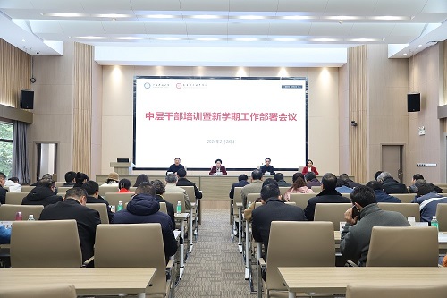 人勤春来早,奋斗正当时。2月28日,学校召开中层干部培训暨新学期工作部署会议,深入学习贯彻党的二十大精神和习近平总书记关于教育的重要论述,认真落实2024年全国教育工作会议精神、省委“1310”具体部署及全省高质量发展大会精神,开展国开广东分部办学评估和“双高”建设工作专题培训,总结今年寒假期间工作,部署新学期工作,努力以奋斗之姿成就奋进之势。学校党委副书记、校长刘文清出席会议,主持专题培训会并讲话。校党委副书记谢锦群出席会议并主持新学期工作部署会议,副校长孙平、王宜奋出席会议。会议设广州校本部主会场和中山校区分会场。全体中层干部参加会议。