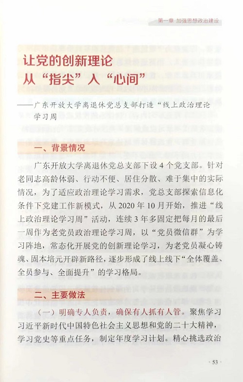 谢锦群指出,近年来,离退休党总支想方设法、用心用情,创造性地做好离退休党员工作,从政治理论学习,到探望关心离退休党员生活,以及畅通老党员为学校事业献计献策渠道,做实做优党建工作,取得优异成绩。学校离退休党总支強化政治功能,努力工作,党建工作的事迹入选《2023年广东省离退休干部党建工作创新案例》,把政治理论学习做成了全省离退休党员党性教育的示范,值得学校各基层党组织学习。