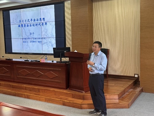 4月11日,学校副校长孙平在中山校区以“学习习近平法治思想,做尊崇法治的时代青年”为题,给经济管理学院2022级学生讲“思政第一课”。
