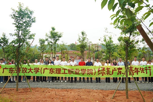 活动当天,校地双方还前往仙塘镇观塘村“广东开放大学(广东理工职业学院)青年林”开展植树护绿活动。学校组织团员青年通过团省委“绿美青年林”平台认捐,定向东源县认种了100棵紫花风铃木,团员青年以“绿”赋能“百千万工程”走深走实,为绿美广东生态建设贡献青春力量。