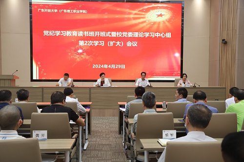 4月29日,学校党纪学习教育读书班开班式暨校党委理论学习中心组2024年度第2次学习(扩大)会议举行,传达学习习近平总书记关于党纪学习教育的重要讲话和重要指示精神以及中央党的建设工作领导小组会议精神,就办好党纪学习教育读书班进行动员部署,并开展《中国共产党纪律处分条例》专题辅导学习。学校党委副书记、校长、党纪学习教育领导小组组长刘文清出席并作开班动员讲话。校党委副书记、党纪学习教育领导小组副组长谢锦群主持会议并传达有关精神。学校副校长孙平、王宜奋出席会议。全体中层干部参加会议。会议设广州校本部主会场和中山校区分会场。