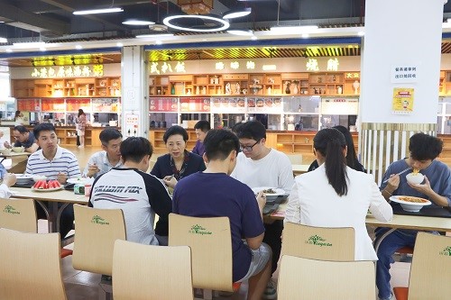 在食堂陪学生用餐