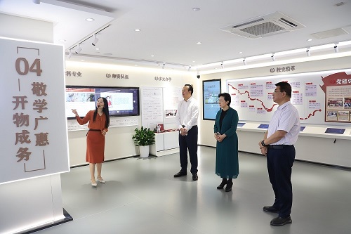 廖榕就对学校先进的办学理念及取得的丰硕办学成果给予高度评价,对学分银行实体中心彰显的终身教育实践前瞻性、先进性和创造性表示高度赞赏。他希望,今后双方能搭建良好的交流平台、形成完善的互动机制,发挥各自资源优势,深化务实合作,实现共赢发展。