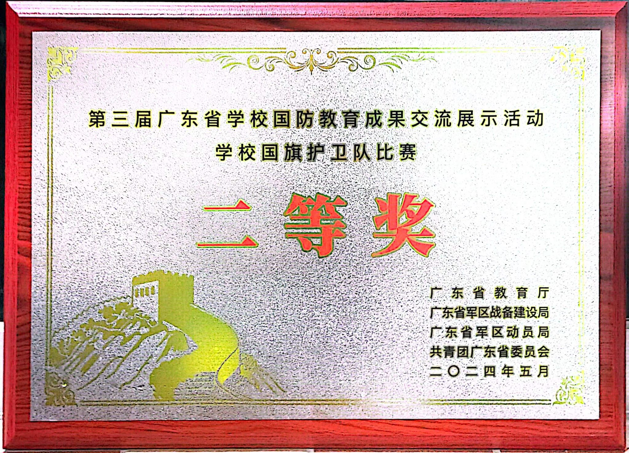 5月17日至20日,“青春筑梦强国防,培根铸魂育新人”第三届广东省学校国防教育成果交流展示活动在广东科贸职业学院(清远校区)举行。其中,在国旗护卫队比赛中,学校荣获高职组二等奖。