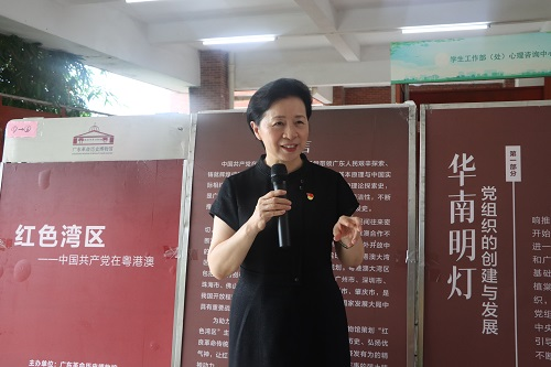 “粤港澳大湾区在全国新发展格局中具有重要战略地位。”5月24日,学校党委副书记、校长刘文清把思政课堂搬到中山校区“红色湾区——中国共产党在粤港澳”展览现场,用心用情宣讲粤港澳大湾区的红色历史和习近平总书记对推进粤港澳大湾区建设的重要指示精神,勉励新时代青年学生传承红色基因,积极投身粤港澳大湾区建设的火热实践,为广东在推进中国式现代化中走在前列贡献青春力量。