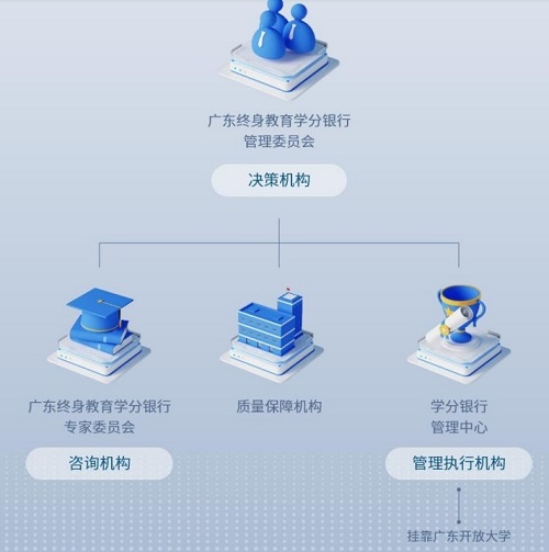 广东终身教育学分银行是经广东省人民政府同意、由省教育厅主办和管理,省人社厅、省发改委、省工信厅、省民政厅、省财厅、省农业农村厅等相关部门和学校共同建设,服务全省全民终身学习的省级学分银行。中心负责学分银行的管理与运营。
