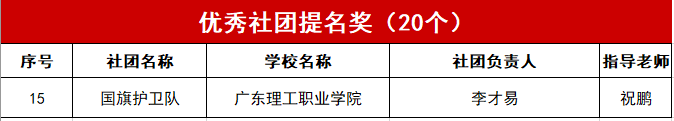 近日,省教育厅公布了2023年广东高校学生社团建设优秀成果征集活动结果。其中,学校学生社团国旗护卫队荣获“优秀学生社团”提名奖。