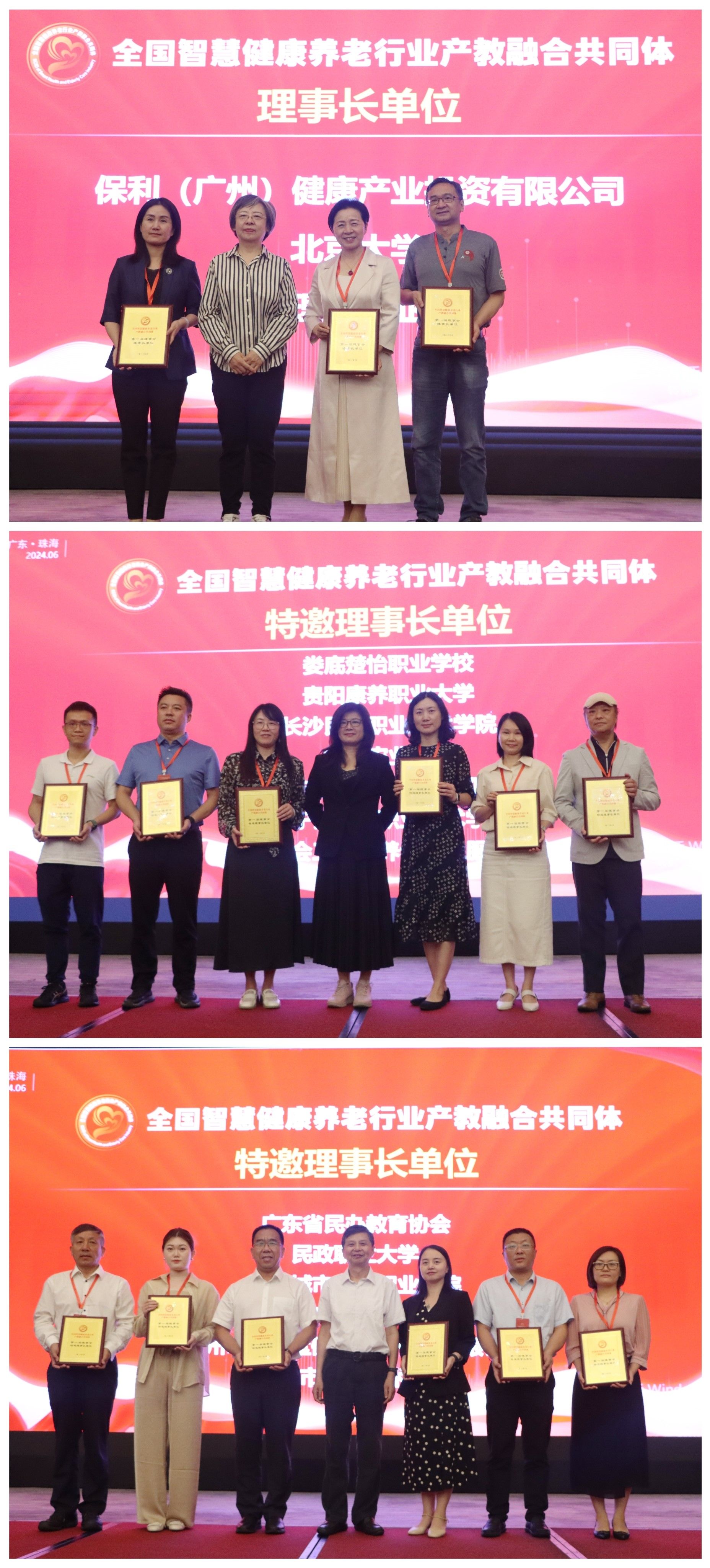 6月28日,全国智慧健康养老行业产教融合共同体第一届理事会第二次会议在珠海召开。会议总结共同体第一届理事会第一次会议召开以来工作开展情况,汇聚各方智慧,共谋行业发展大计,推动全国智慧健康养老行业产教融合向纵深发展。会议举行了共同体全体成员单位授牌仪式和粤澳学习中心揭牌仪式,发布了共同体2024年重点任务。