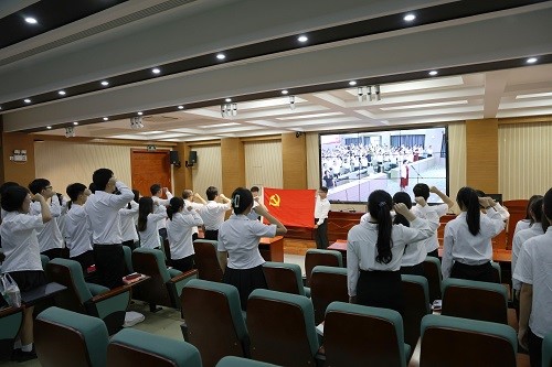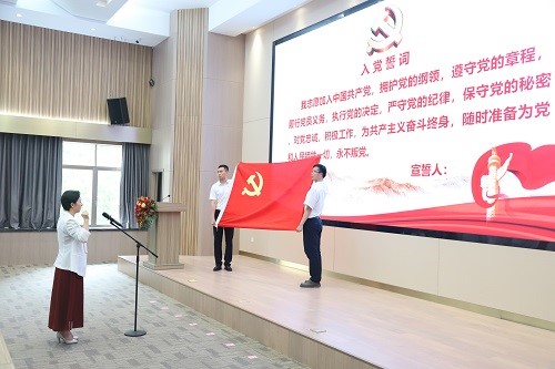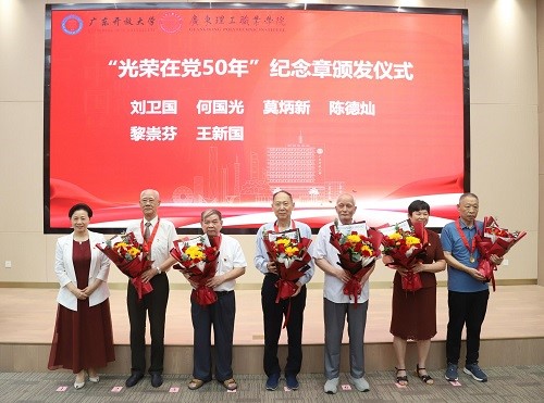 会上,刘文清带领新发展预备党员入党宣誓,带领其他与会党员重温入党誓词。党员们面向鲜红的党旗,用铮铮誓言昭示了入党初心,表达了对共产主义事业的坚定信仰、对党的无比忠诚和为党的事业奋斗终身的坚定决心。随后,刘文清为学校今年荣获“光荣在党50年”纪念章的6位老党员颁发纪念章并献上鲜花,衷心感谢他们为学校建设和发展作出的贡献。