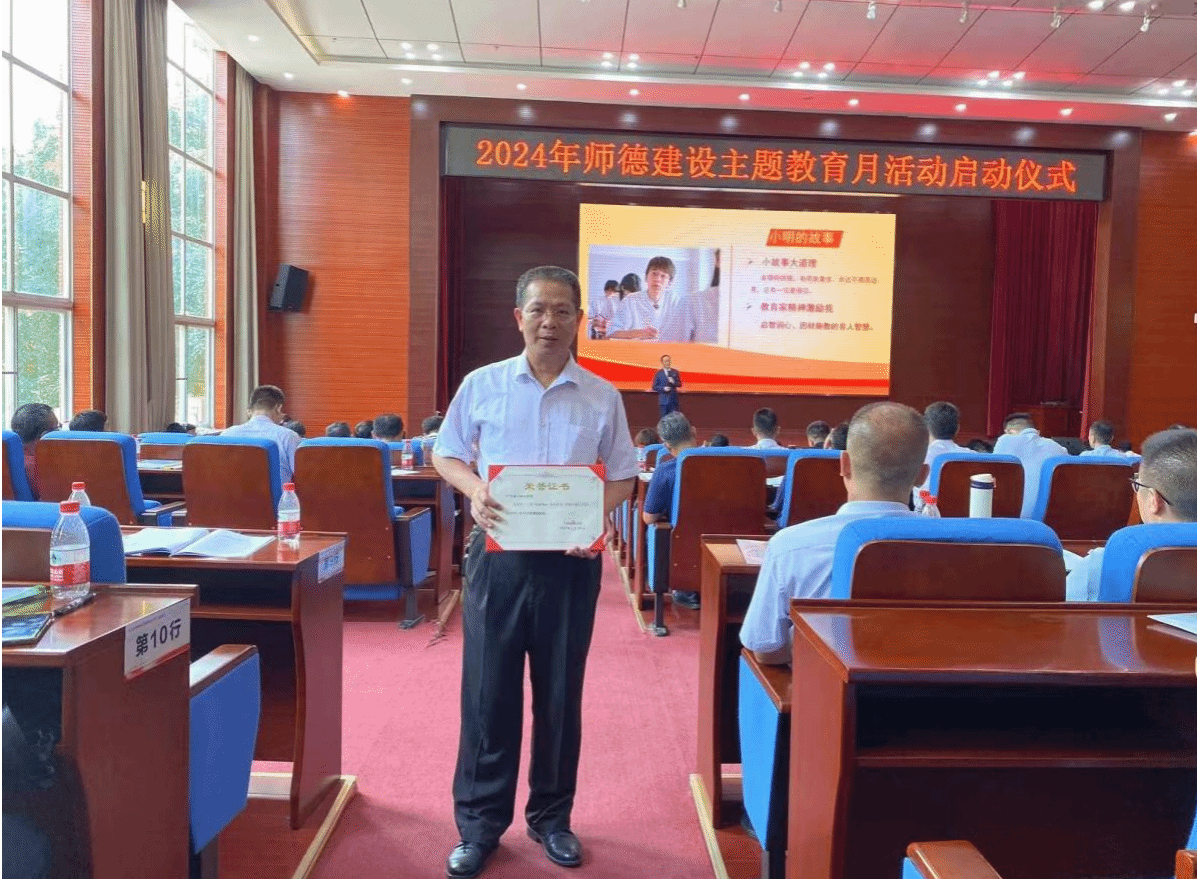 会议围绕“大力弘扬教育家精神,加快建设教育强国”主题,对全省教育系统2024年师德建设主题教育月活动进行了动员部署,在主会场为全省教育系统第十三届师德主题征文及微视频征集活动获奖单位和个人代表颁发证书。我校法律与行政学院刘忠权教授的作品《生命中的一道光——怀念赫广义老师》荣获师德征文(高职高专组)一等奖,文化传播与设计学院老师刘韵珊的作品《寻找夜空中闪亮的星星——班主任工作之我见》荣获三等奖;学校荣获优秀组织奖,是全省8所获得该奖的高校之一。