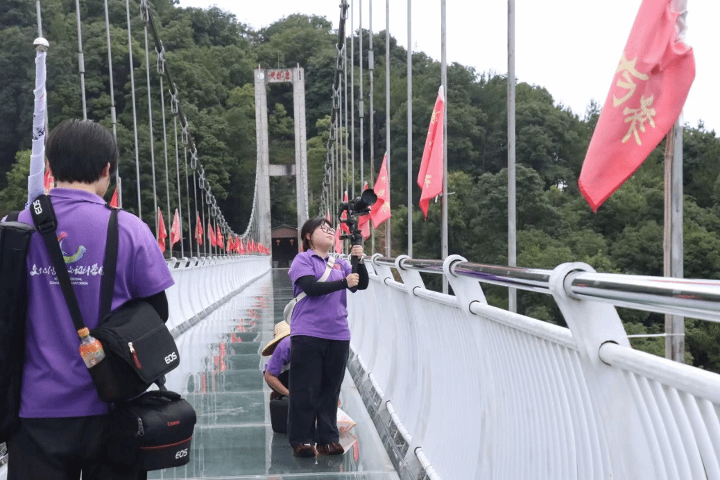 在蓝口镇,应用外国语学院文旅兴乡实践团开展红色文旅调研,并为张丁纪念园、咸水塘国共谈判旧址等红色地标及乐村石楼、齐坑村宗祠等客家忠孝文化民居建筑拍摄英语介绍视频。