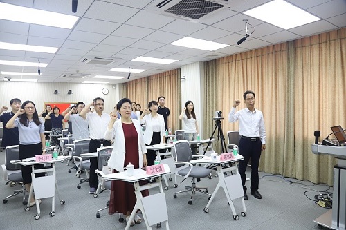 “我庄严宣誓:忠诚党的教育事业,遵守教育法律法规,履行教书育人职责……”谢锦群带领教师代表集体宣誓,展现教师的职业理想、职业操守和职业精神,促进大家充分认识人民教师的光荣使命,恪尽职守、尽职尽责。