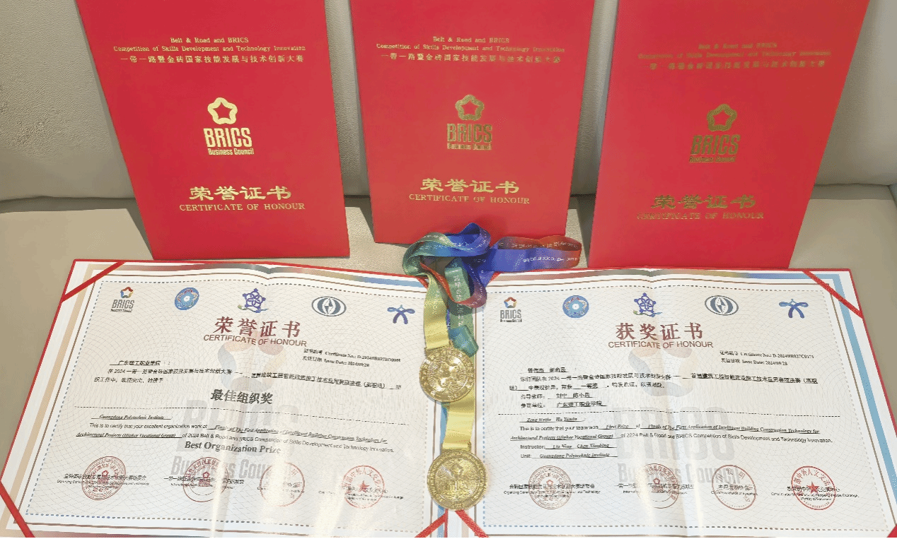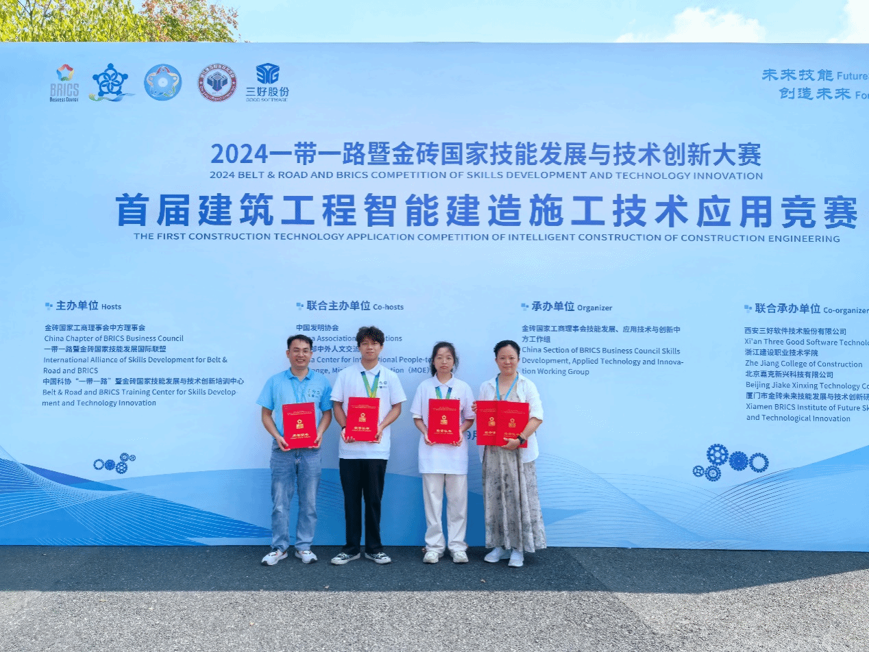 9月28日,2024“一带一路”暨金砖国家技能发展与技术创新大赛首届建筑工程智能建造施工技术应用赛项全国总决赛圆满落幕。学校工程技术学院学生曾伟杰、胡俞民获高职组一等奖(金牌),刘宁、陈小兵获评“优秀指导教师”,学校被授予“最佳组织奖”。