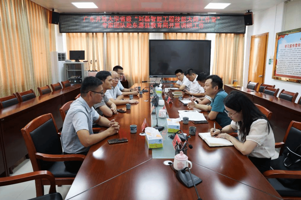 在东源县教育局,专家团队与教育局相关领导商议“广东省刘磊智能工程技能大师工作室东源基地”挂牌事宜,并就基础教育教师人工智能素养轮训、学科竞赛支持、科研项目联合申报等具体事宜进行了协商,达成了共识。