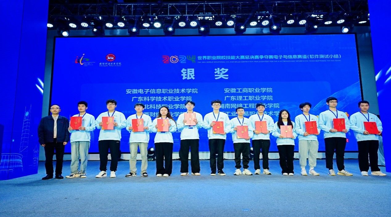 10月25日至28日,2024年世界职业院校技能大赛总决赛电子与信息赛道二(软件测试)争夺赛在成都职业技术学院举行。其中,学校人工智能学院学生蔡泽彬、黄凯填、曾树灿、朱晓雨和指导老师刘小飞、李美满、崔海燕组成的参赛团队一路披荆斩棘,荣获银奖,实现了学校在此项赛事参赛成果上的重大突破。