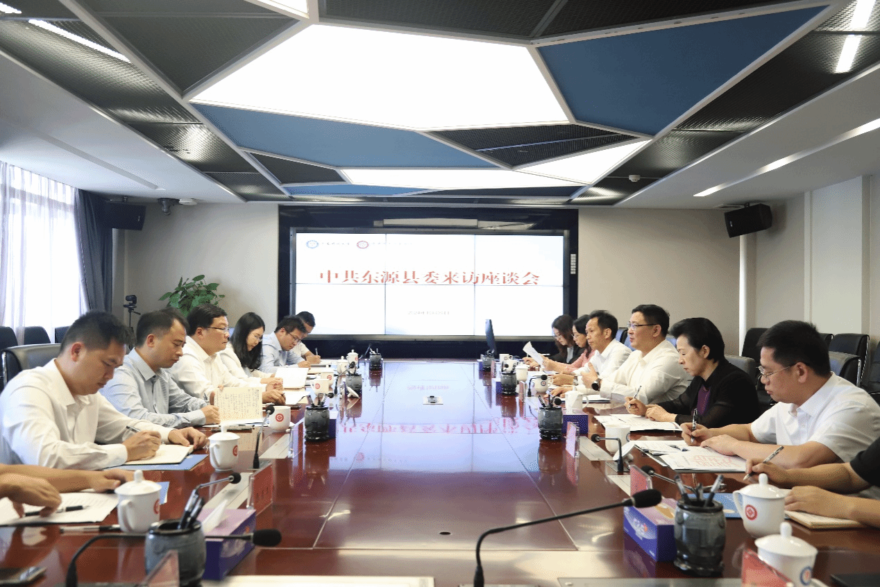 10月29日,东源县委书记秦卫民带队来校走访,与学校党委书记幸小涛,党委副书记、校长刘文清就落实省委十三届五次全会部署、推动“双百行动”结对合作走深走实进行了工作交流。学校党委副书记谢锦群,东源县政府副县长吴丽琴参加活动。