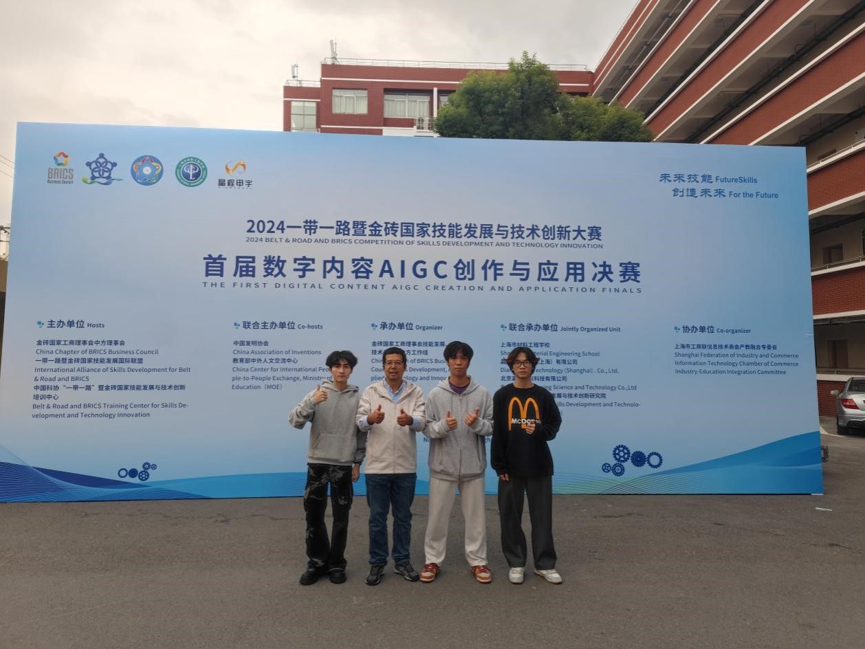 11月9日,2024“一带一路”暨金砖国家技能发展与技术创新大赛之首届数字内容 AIGC 创作与应用赛项全国总决赛在上海市材料工程学校举行。其中,学校人工智能学院教师陈亚芝获教师组二等奖、人工智能技术应用专业学生张颖禧获学生组三等奖,刘磊任指导老师。文化传播与设计学院数字媒体技术专业学生杨树森、何其桓获学生组三等奖,黄洛章获学生组优秀奖,鲁文娟、金一强任指导老师。学校获“优秀组织奖”。