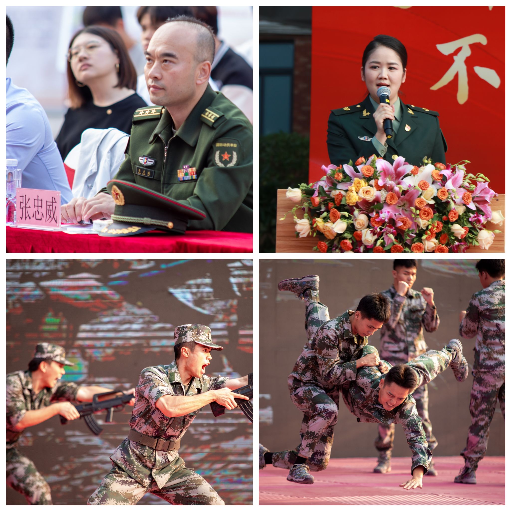 现场还汇报表演了军体拳、盾牌操、刺杀操和防暴演练等六项军事技能。现场观众热情高涨、掌声不断。