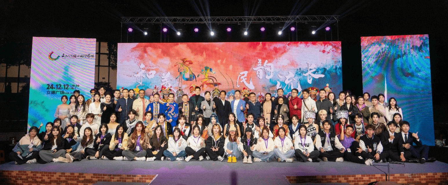 悠扬的古筝演奏、唯美的古风演唱、青春活力的热舞,矫健飒爽的潮汕英歌舞等精彩节目,引来台下阵阵喝彩。省级非遗项目传承项目双田畲族村蓝家拳传承人为师生们表演了一套行云流水的传统拳术,将现场气氛推向高潮。