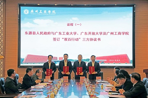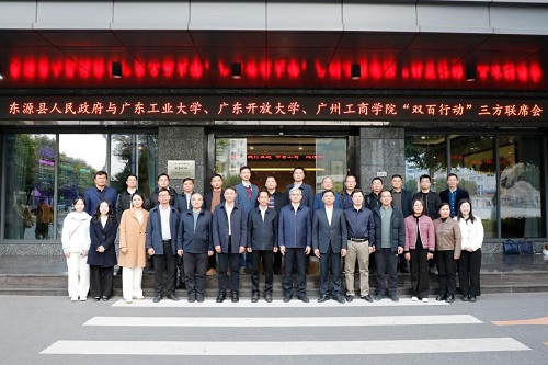 1月7日,广东工业大学、广东开放大学、广州工商学院和东源县在广州工商学院召开2025年“双百行动”三方联席会议,共同谋划“双百行动”结对共建的具体实施新路径和合作新机制。学校党委副书记谢锦群,以及广东工业大学党委副书记陈卓武、广州工商学院校长王日华、东源县委副书记林俊超出席会议并讲话。广州工商学院党委书记张振超主持会议,三所高校及东源有关部门负责同志、“双百行动”驻县工作队等参加会议。