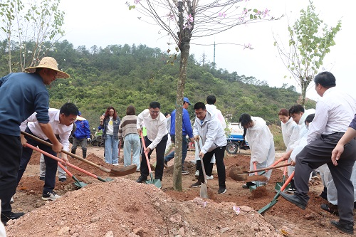 幸小涛在现场讲话时回顾了植树节的由来,指出其与孙中山先生密切相关,今天我们在中山故里植树造林,尤为有意义。这次活动,是学习贯彻习近平生态文明思想、践行“绿水青山就是金山银山”理念、推动形成全民爱绿植绿护绿兴绿价值追求的具体行动,是贯彻落实省委“1310”具体部署、积极投身绿美广东生态建设的有力体现,是巩固拓展学校“广东省绿色学校”创建成果、增强学校发展动能的基本要求。大家种下的既是绿色树苗,也是学校绿色发展的美好未来,对于打造美丽健康的工作学习生活环境,推进以美育人、以文化人,促进师生德智体美劳全面发展,具有重要作用。希望广大师生向绿而行、向新发展,致力成才育才。
